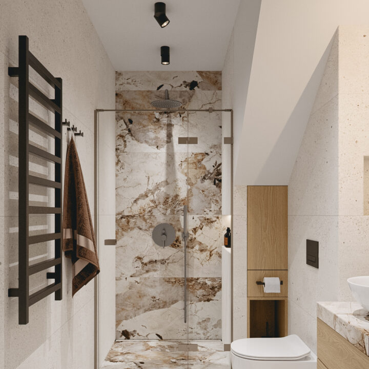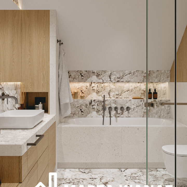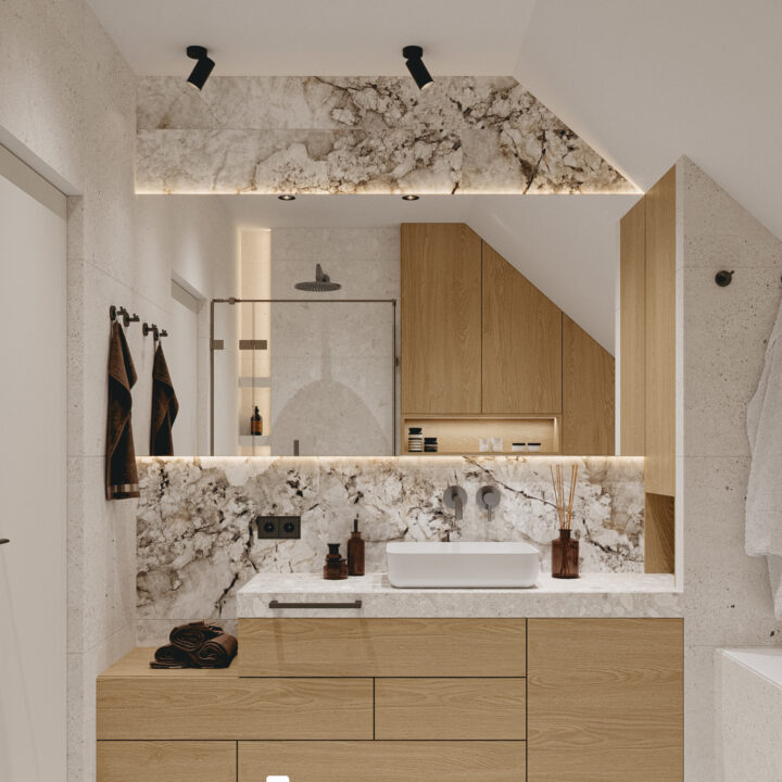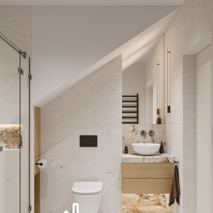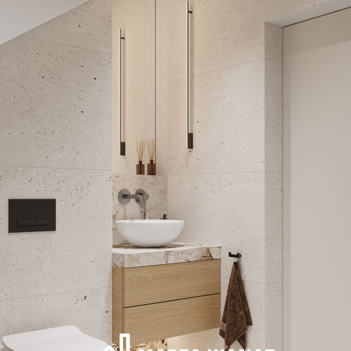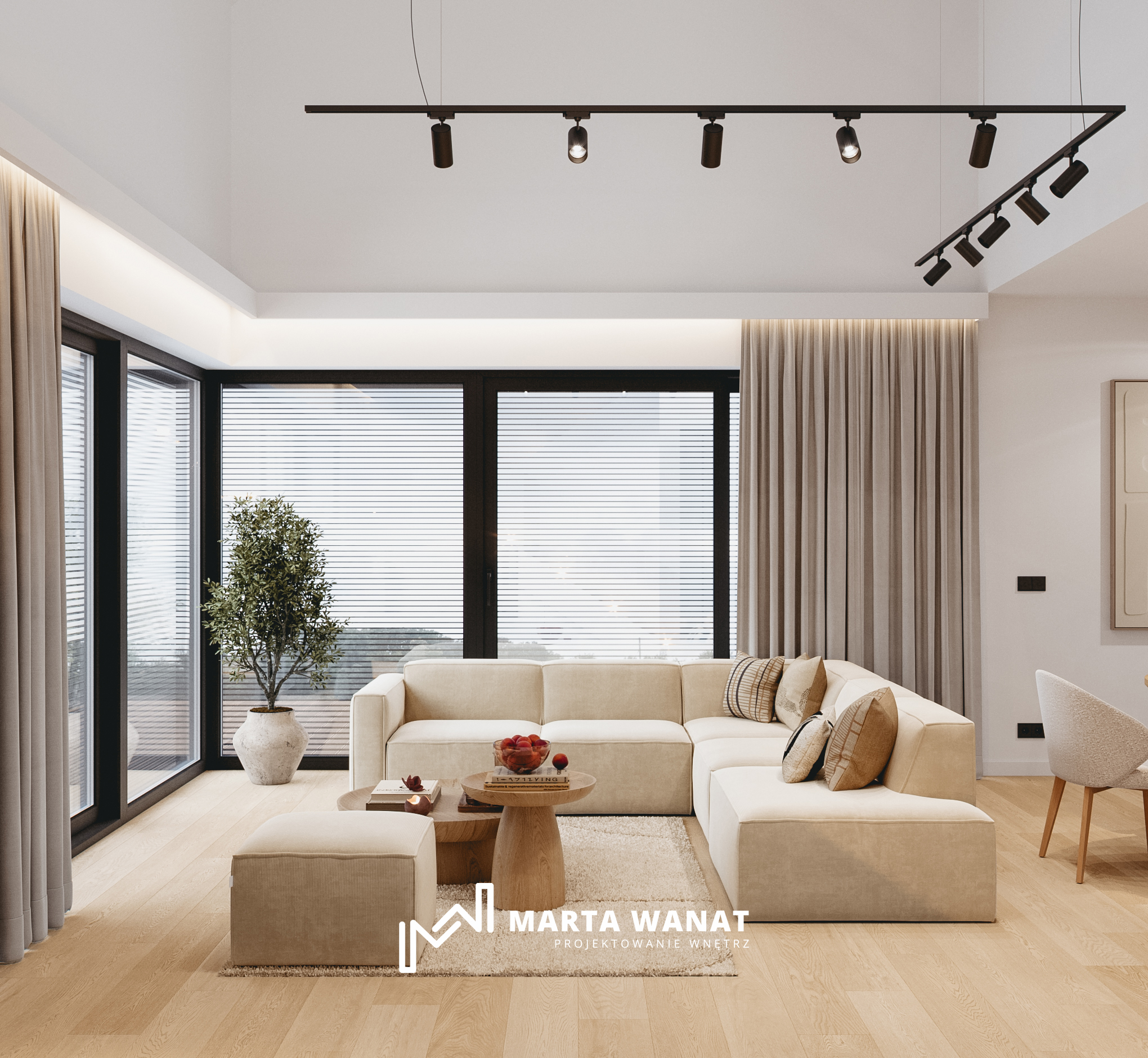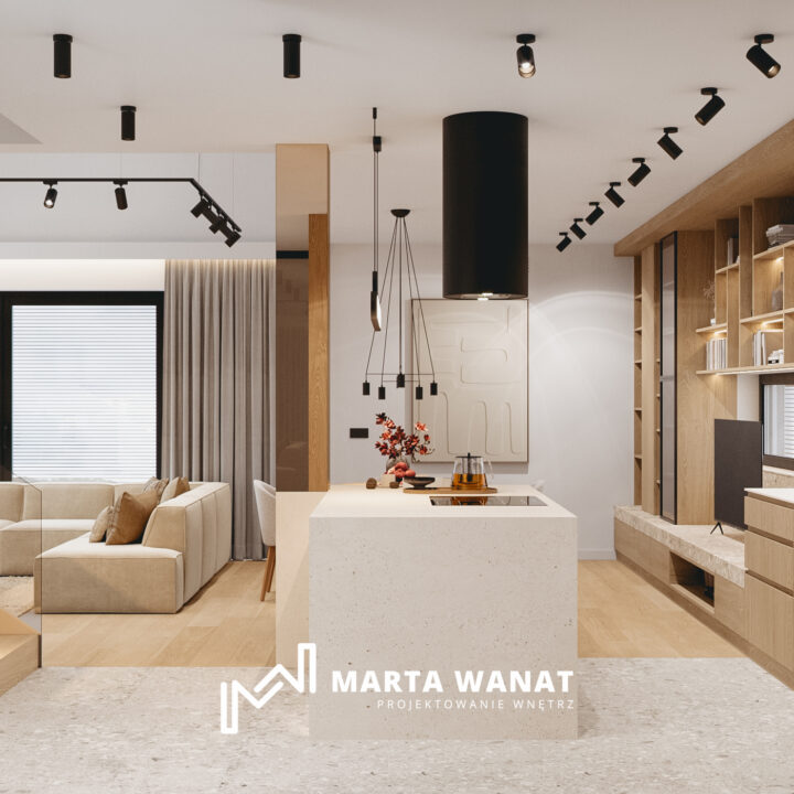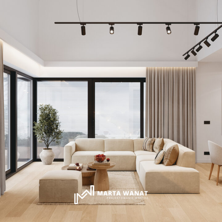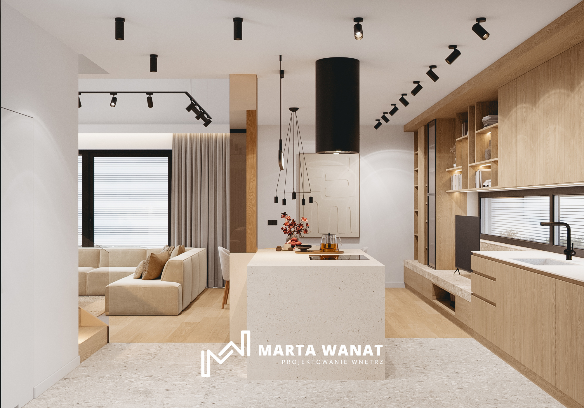 Wnętrze domu w stylu minimalistycznym zostało zaprojektowane z myślą o rodzinie. W centrum znalazła się otwarta strefa dzienna - kuchnia, salon i jadalnia - zaprojektowane tak, aby płynnie się przenikały. Minimalistyczne dodatki podkreślają nowoczesny charakter wnętrza.